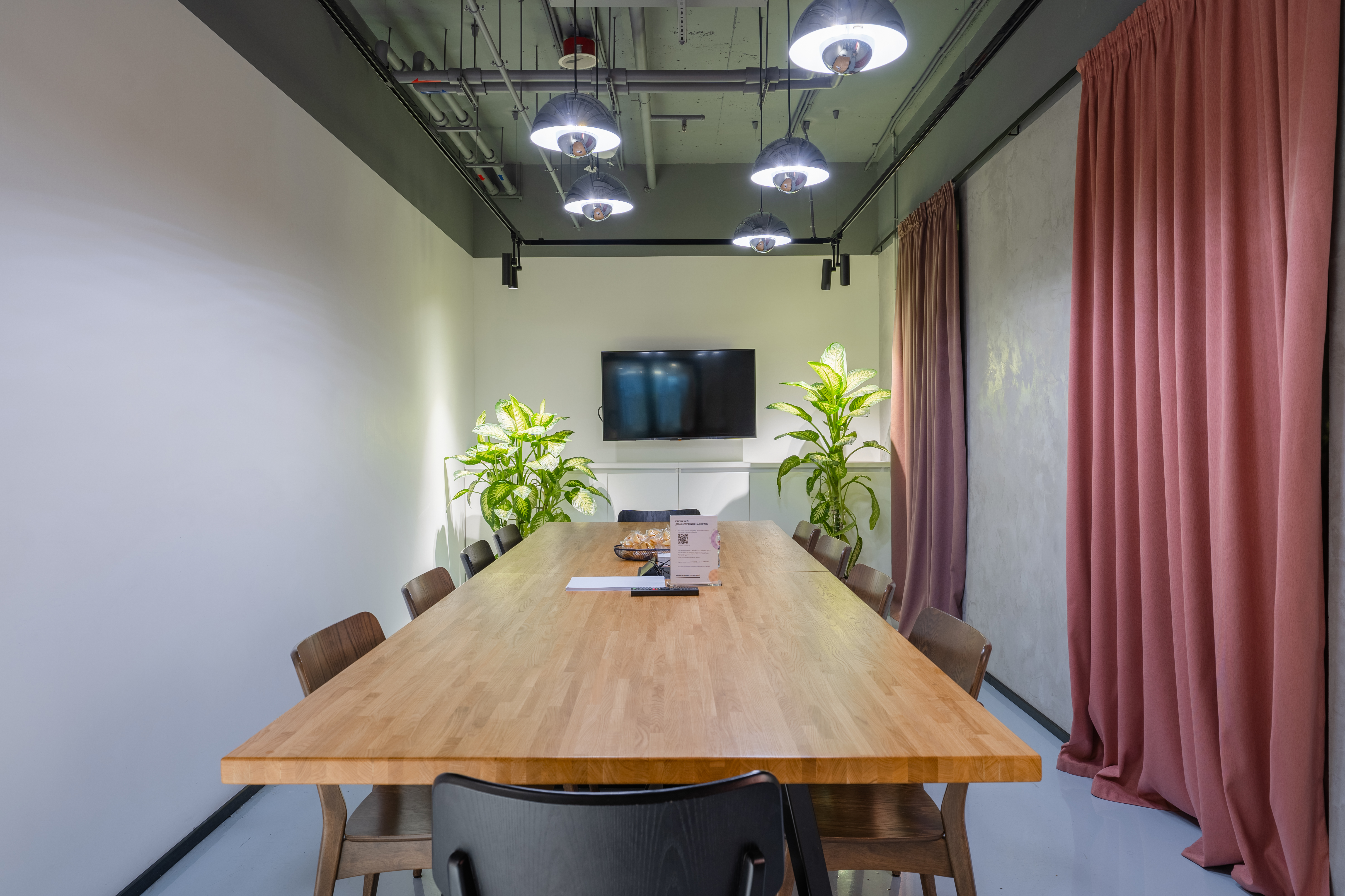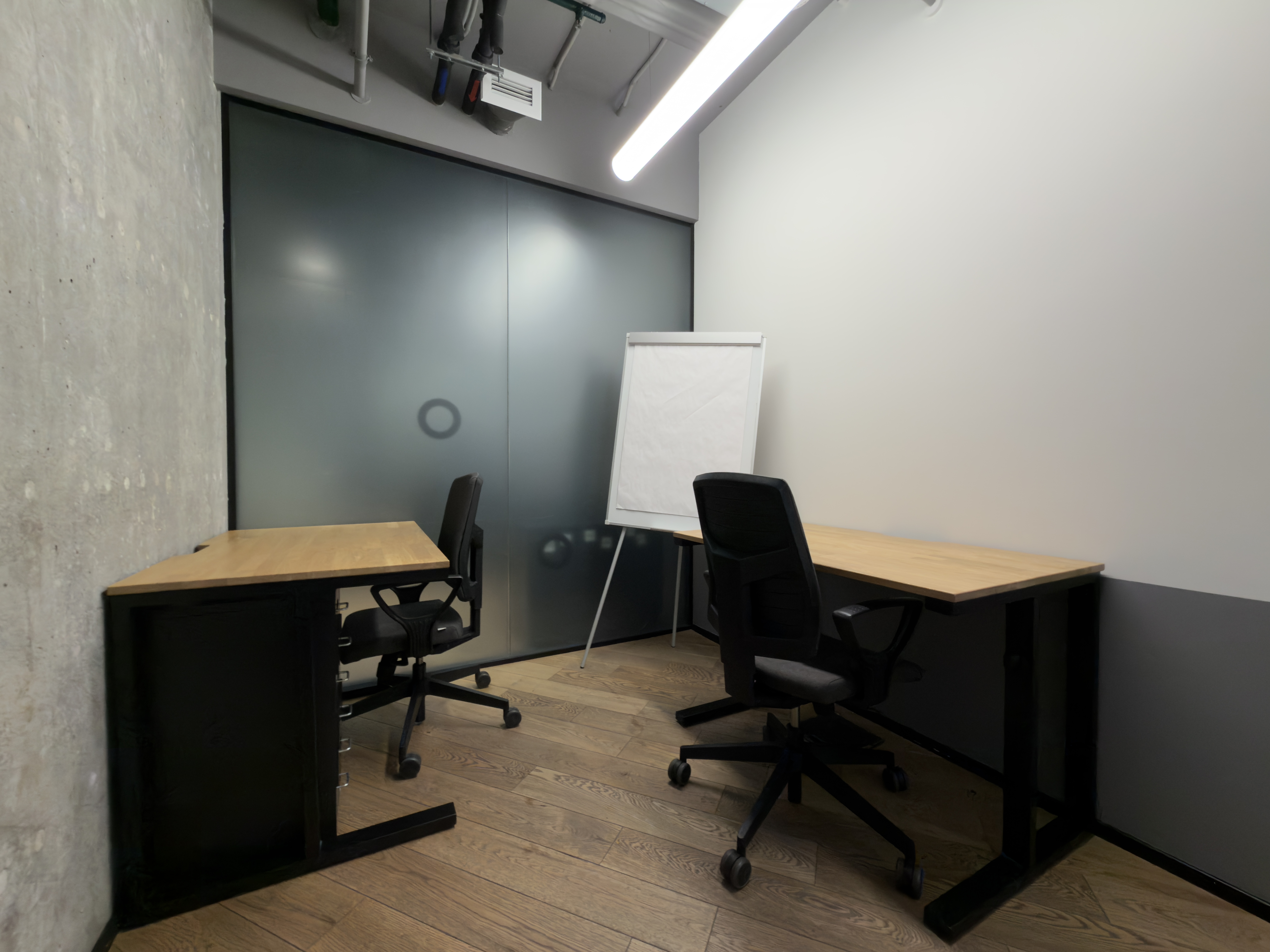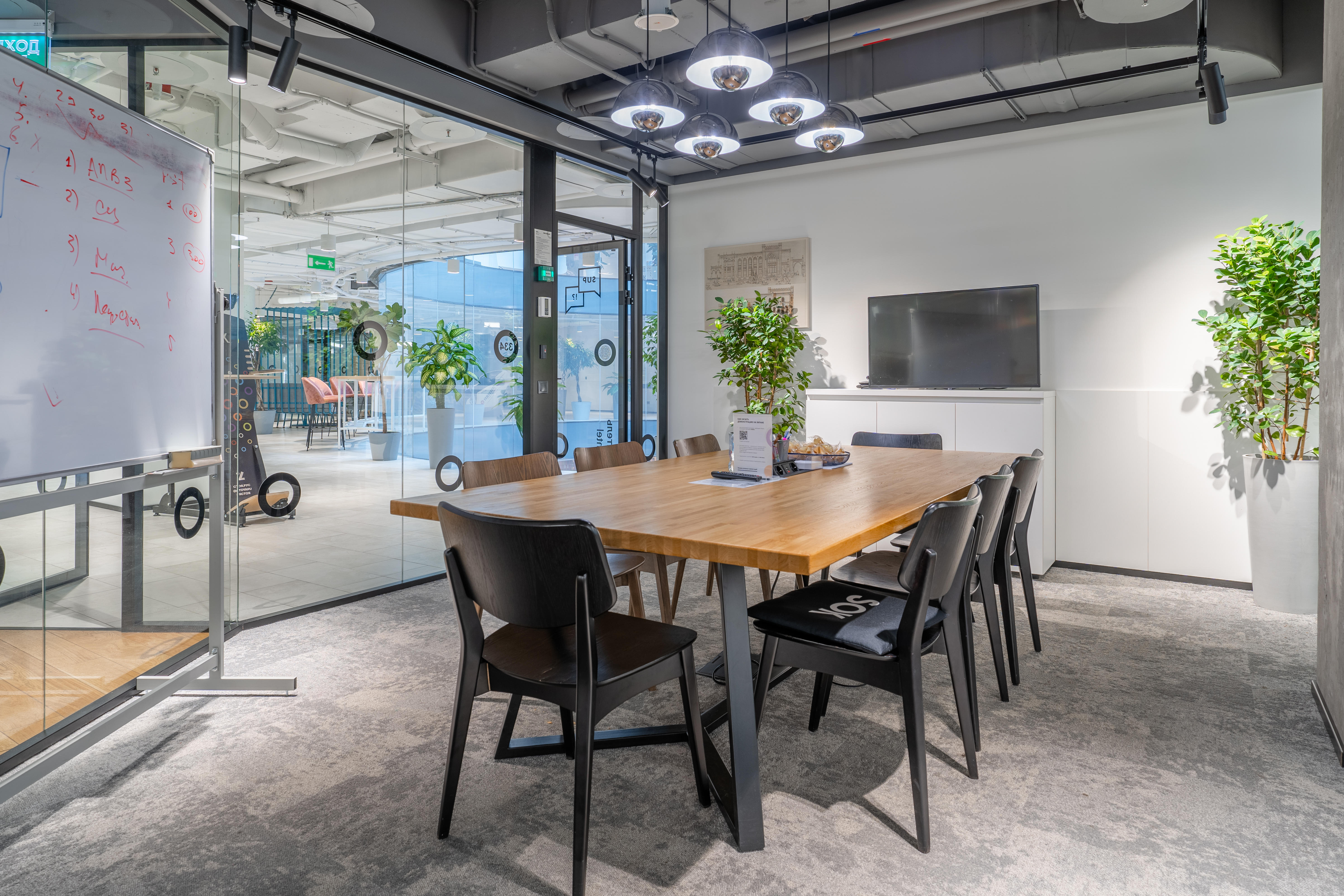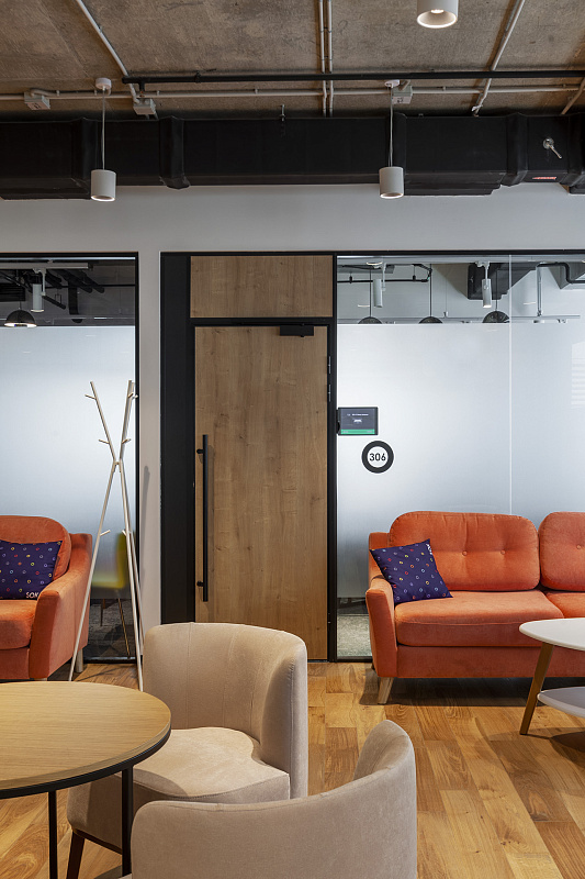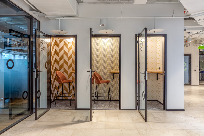 Переговорки бронируются дистанционнно и есть все необходимо для онлайн конференций. Skype-room c шумоизоляцией, вентилицией, розеткой и магнитной стеной (это что-то)