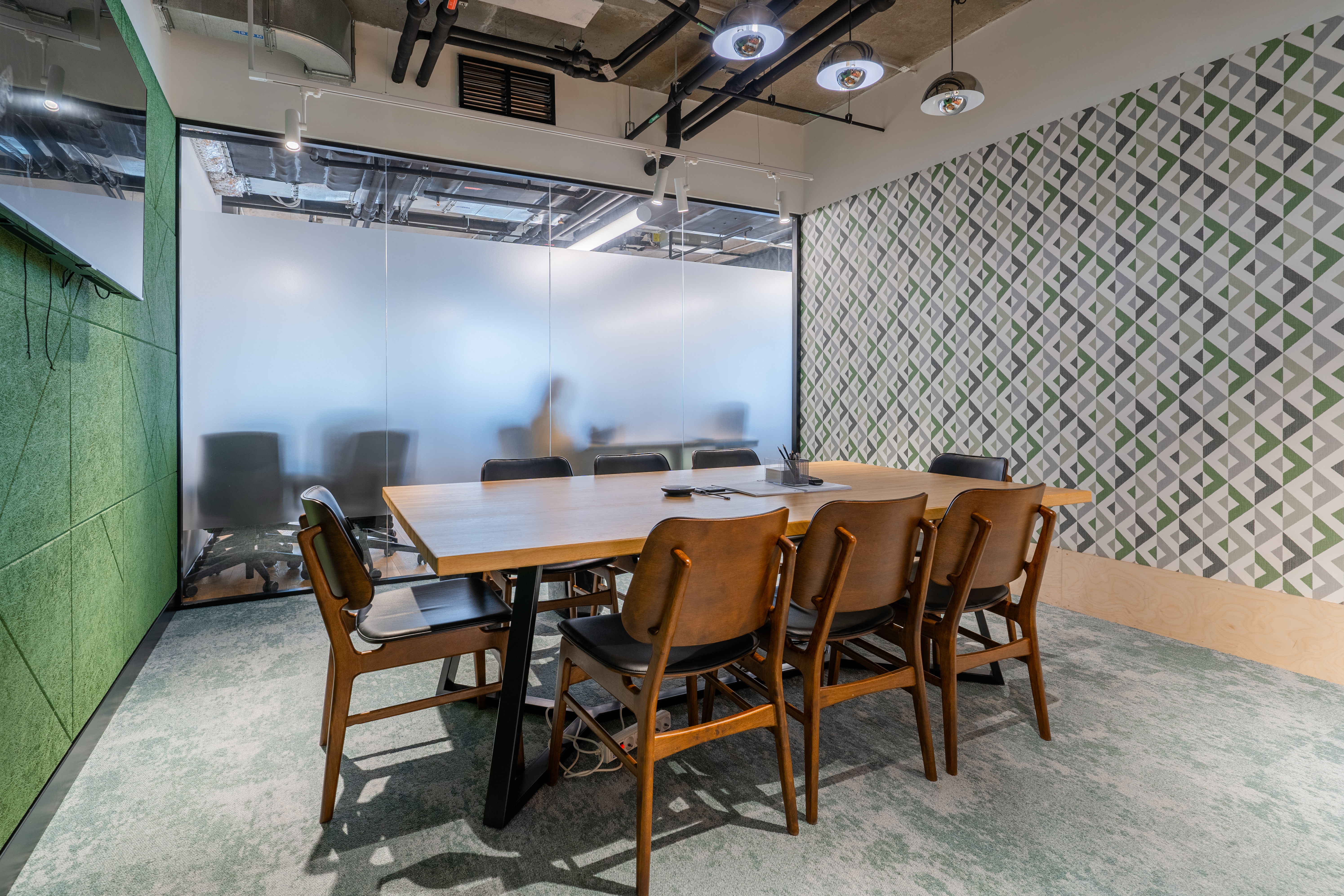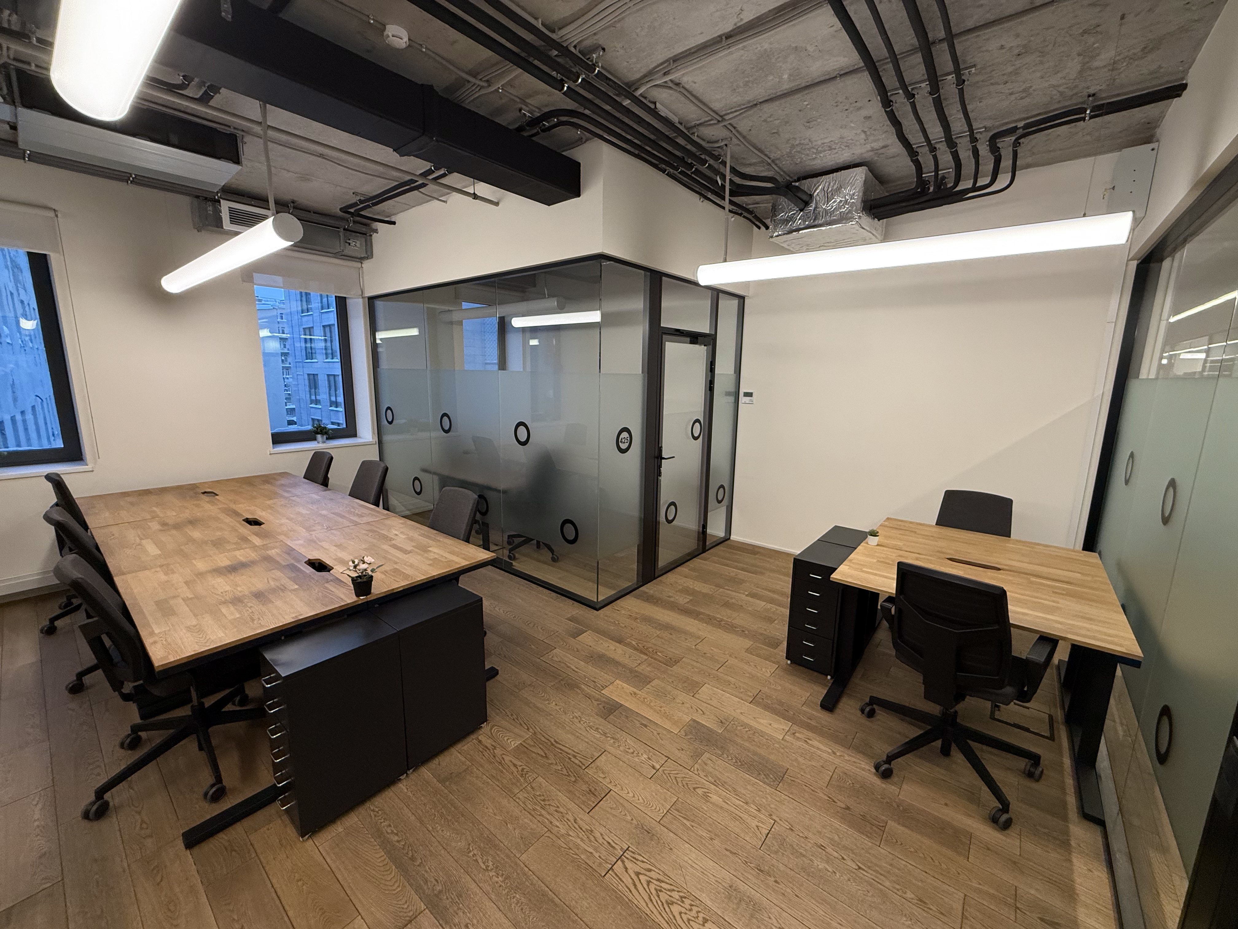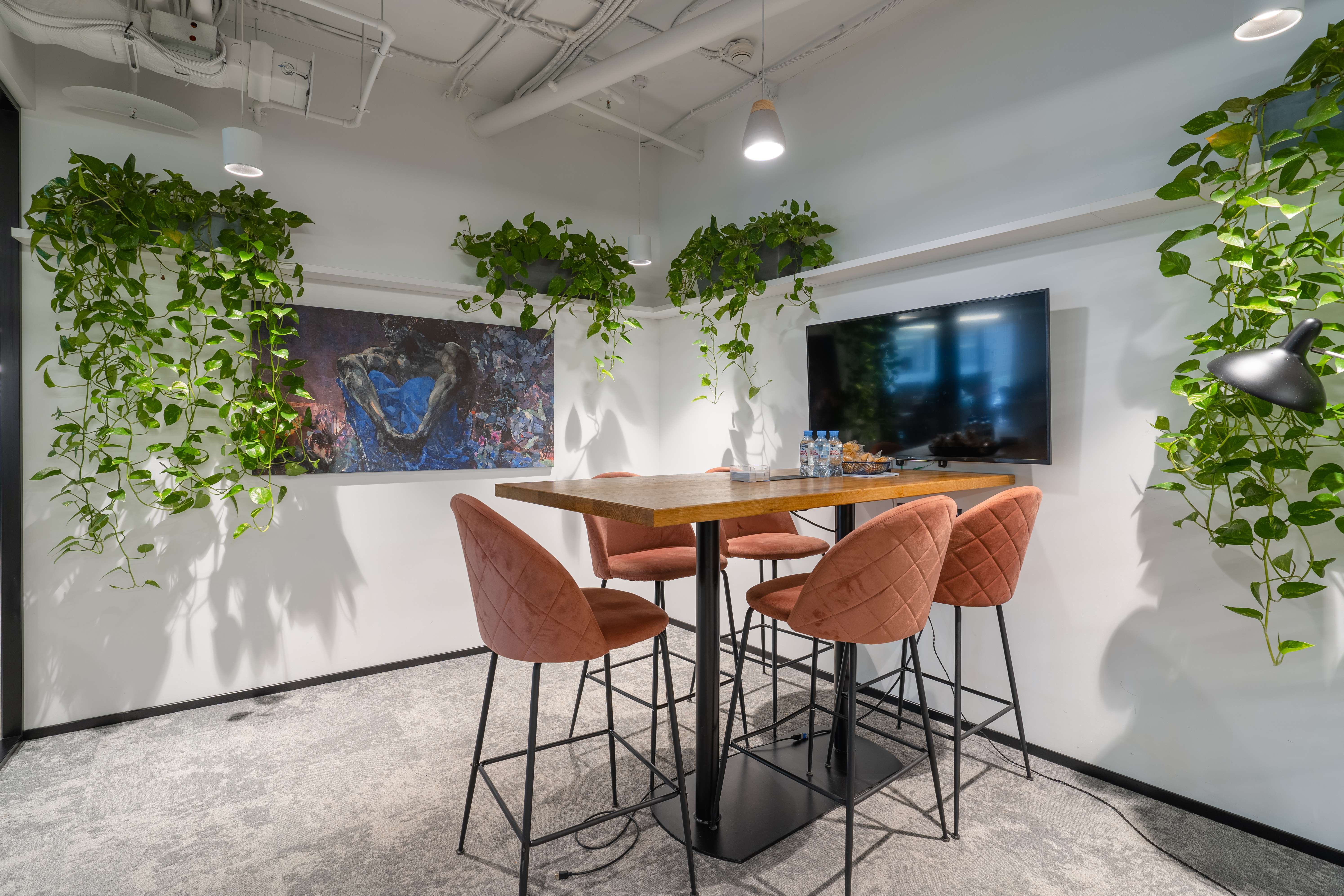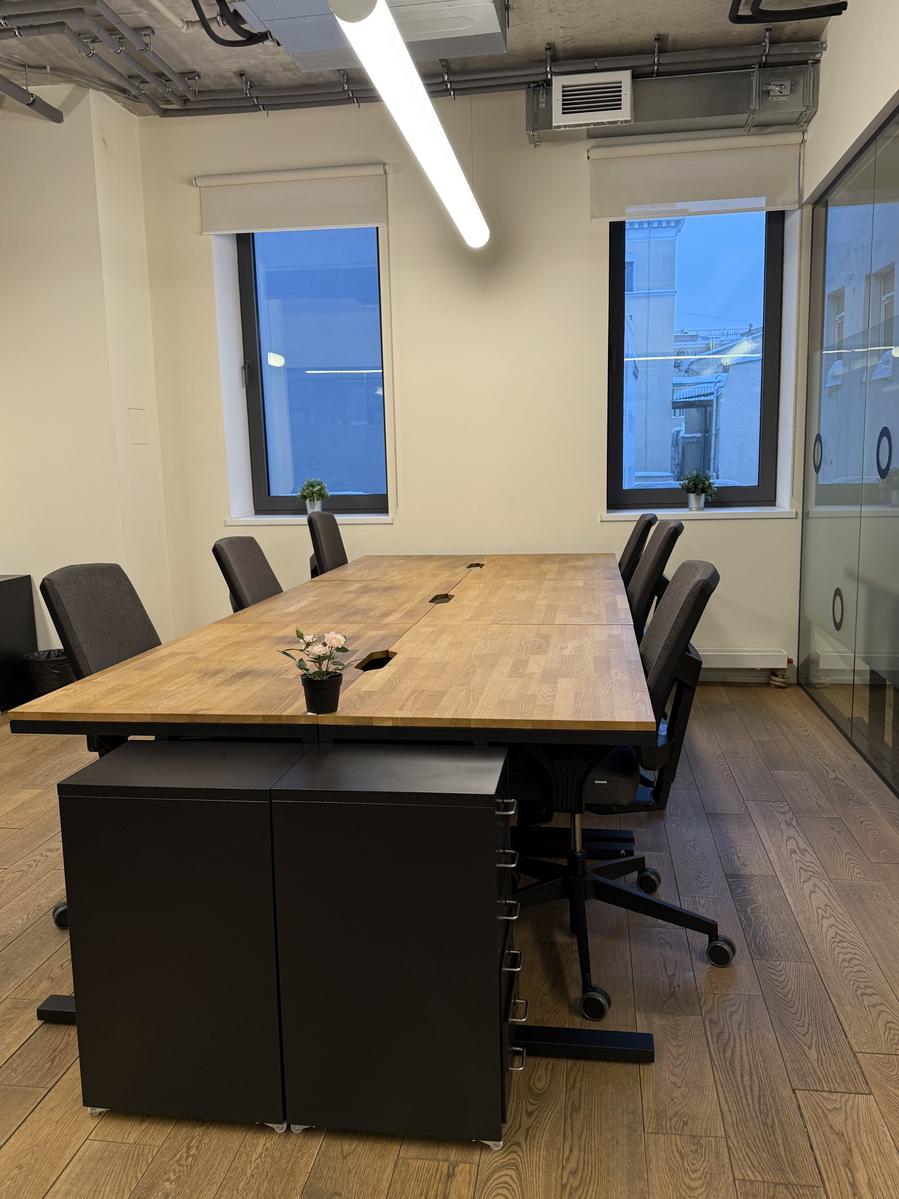 Переговорки бронируются дистанционнно и есть все необходимо для онлайн конференций. Skype-room c шумоизоляцией, вентилицией, розеткой и магнитной стеной (это что-то)