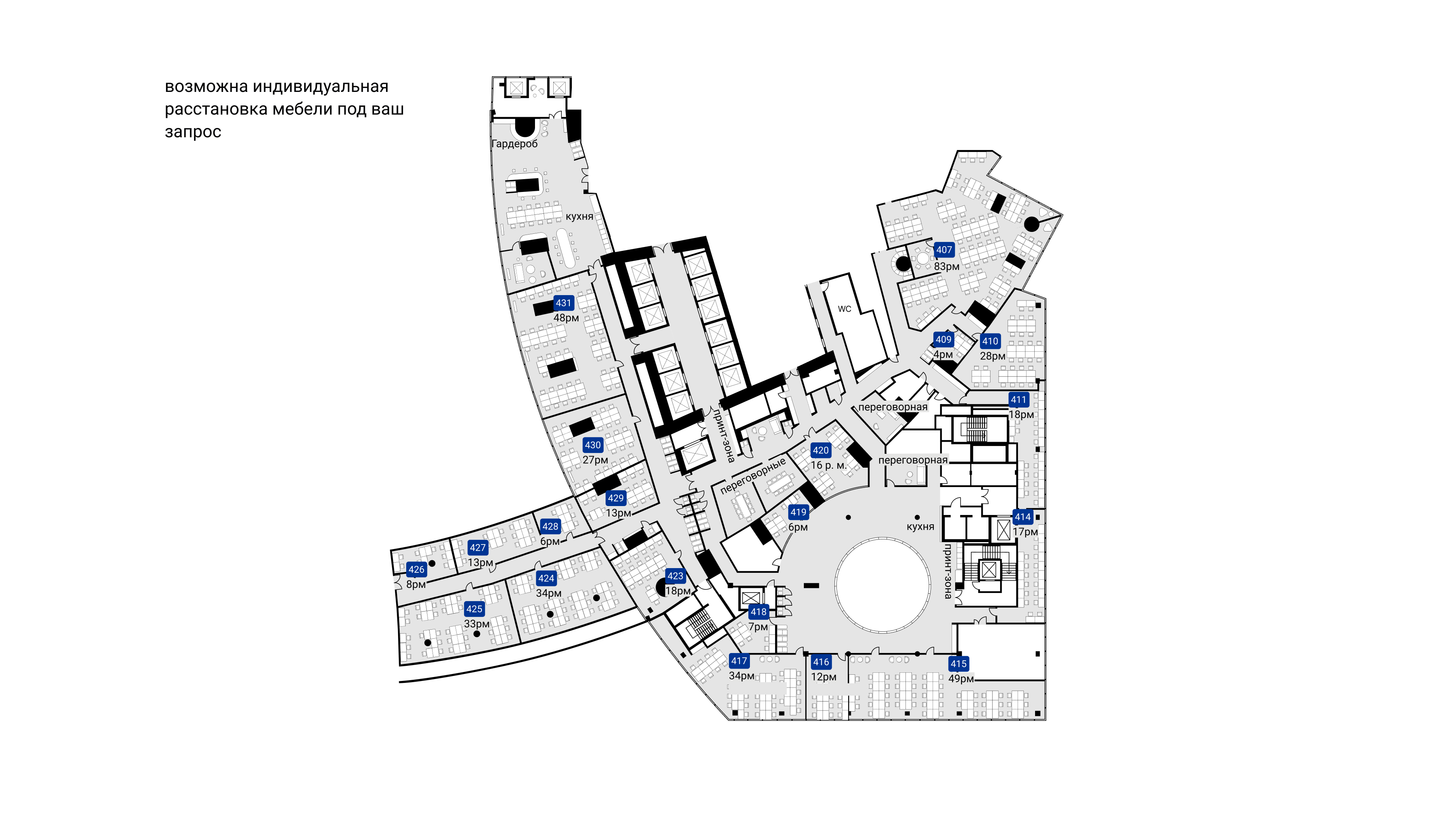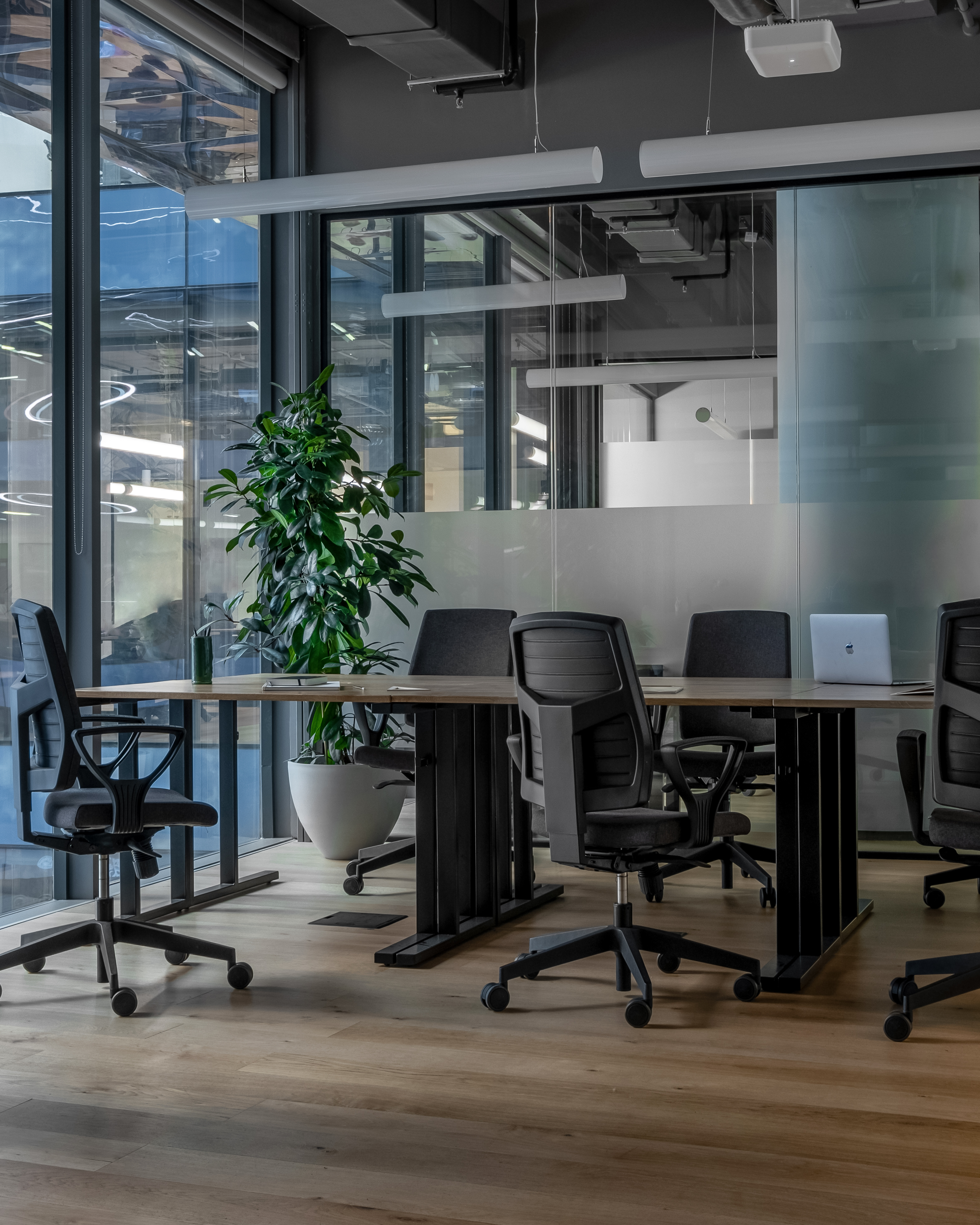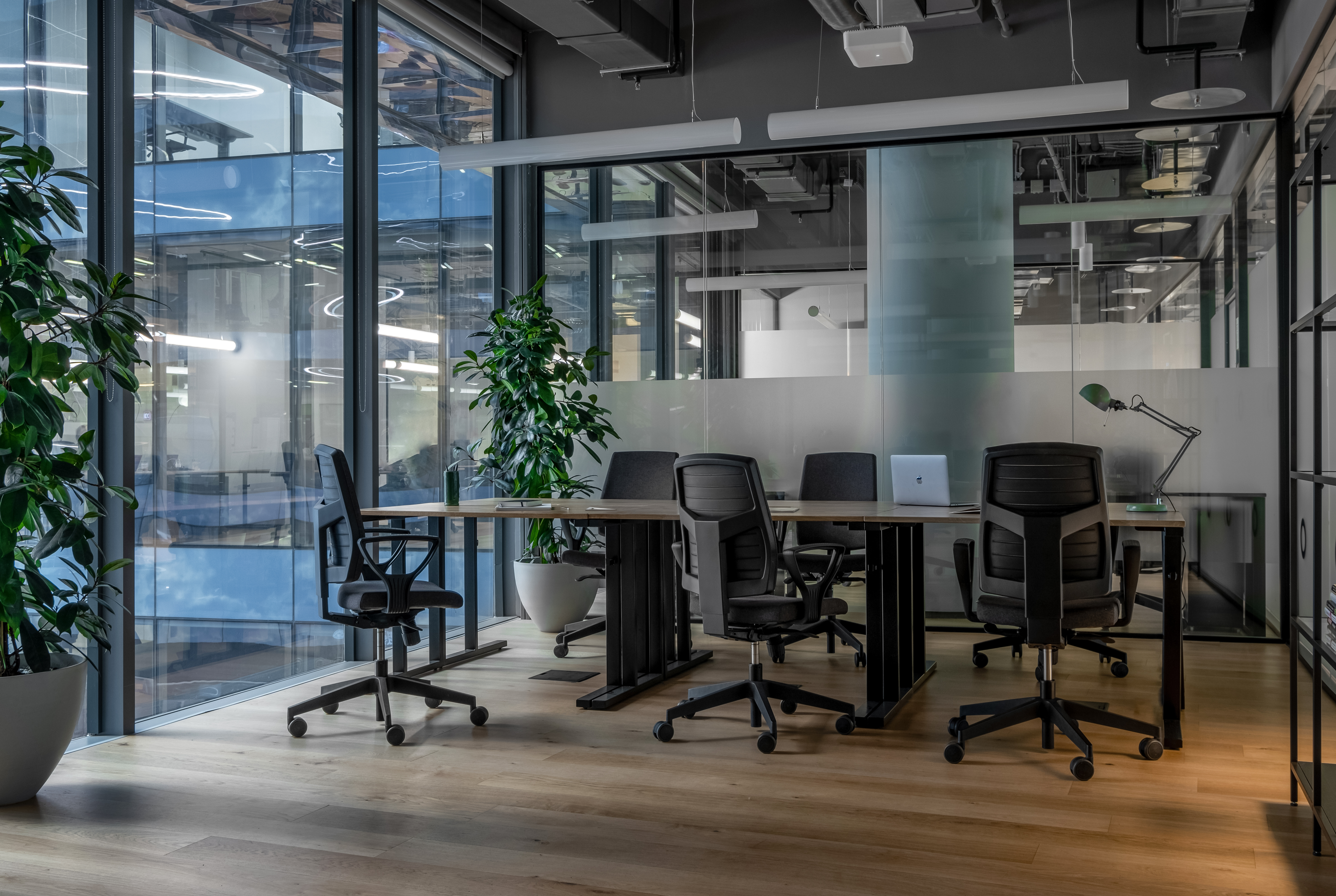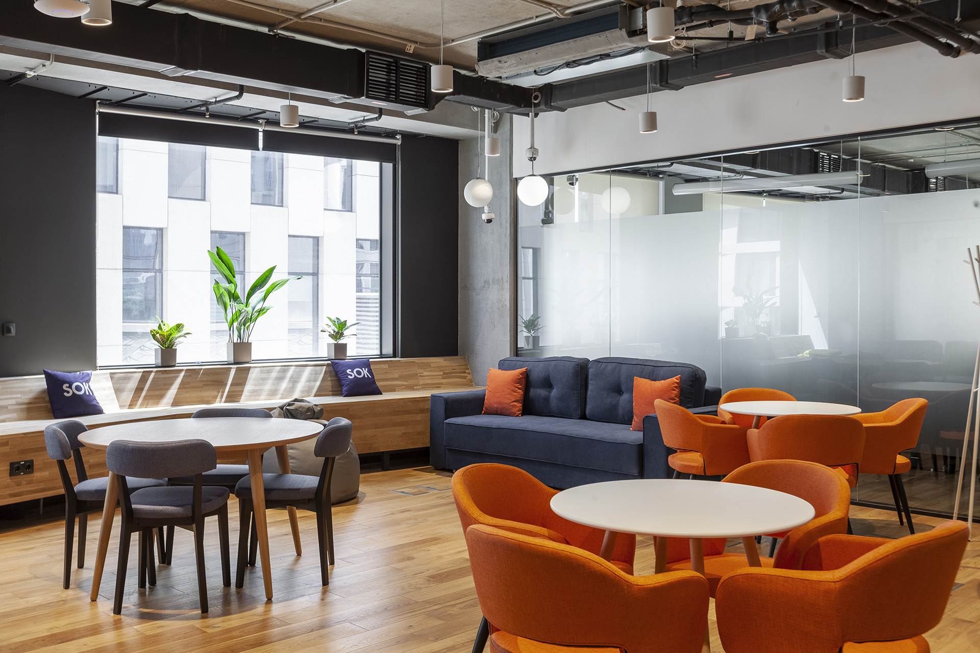 Переговорки бронируются дистанционнно и есть все необходимо для онлайн конференций. Skype-room c шумоизоляцией, вентилицией, розеткой и магнитной стеной (это что-то)