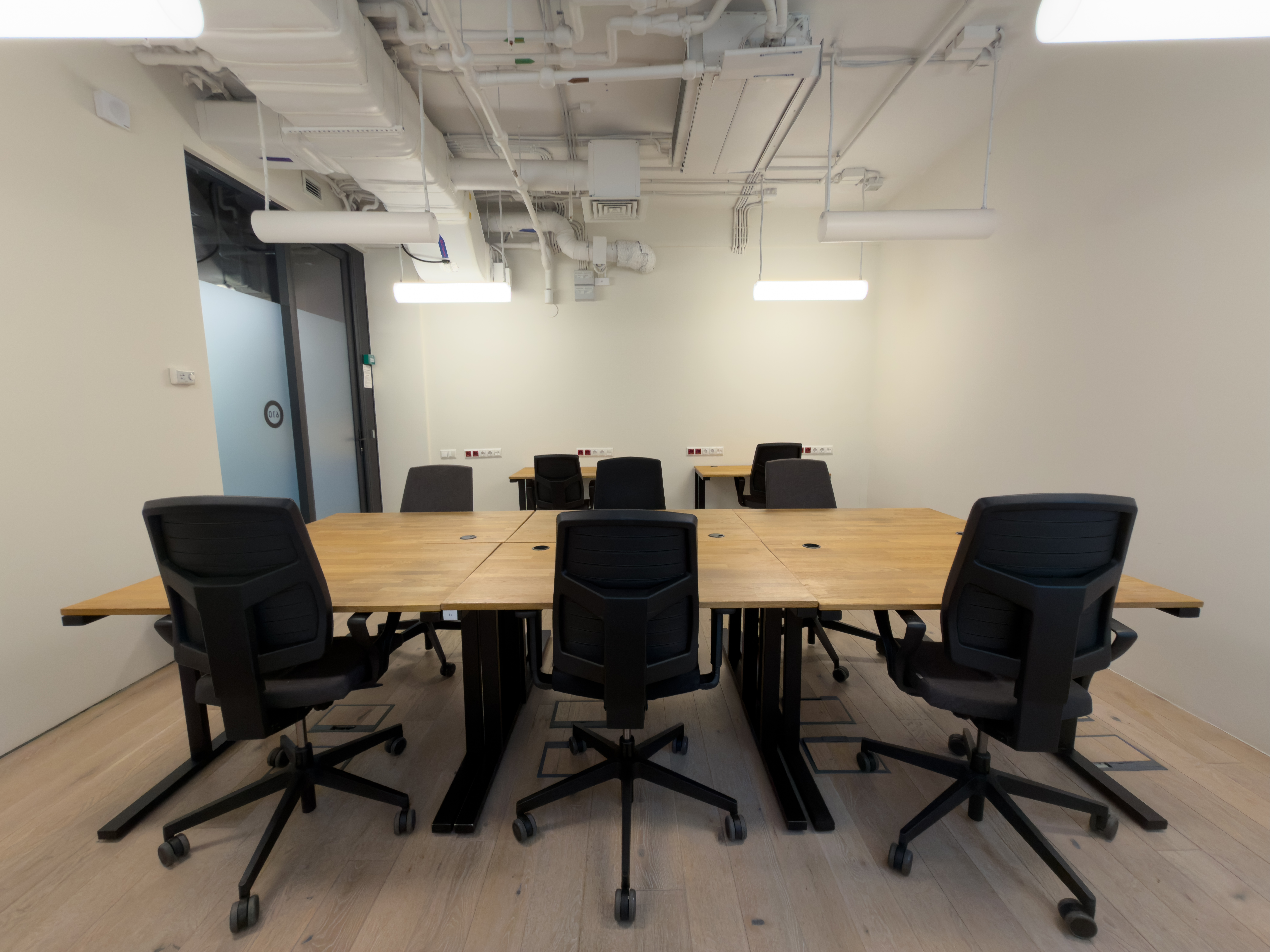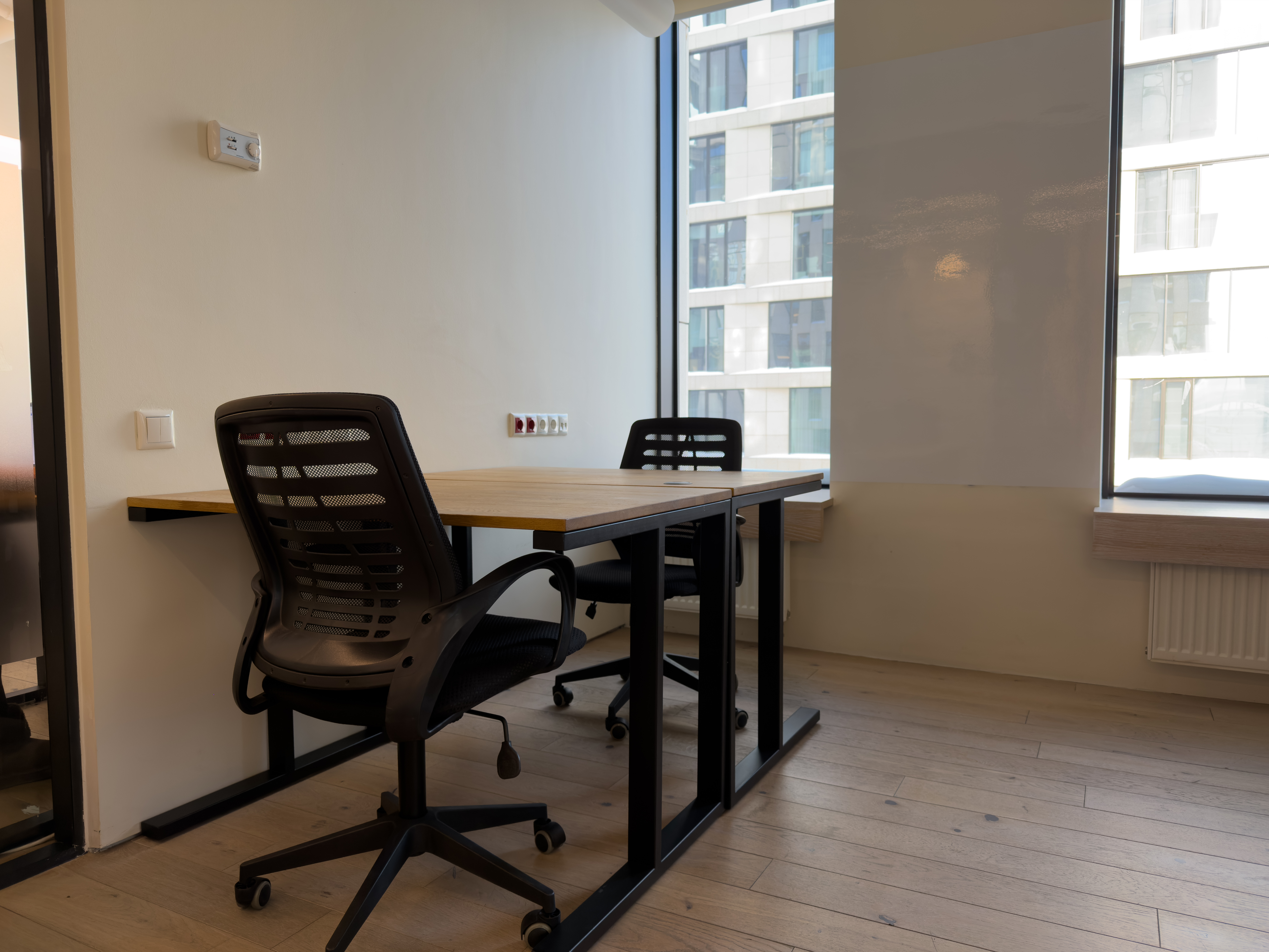 Переговорки бронируются дистанционнно и есть все необходимо для онлайн конференций. Skype-room c шумоизоляцией, вентилицией, розеткой и магнитной стеной (это что-то)
