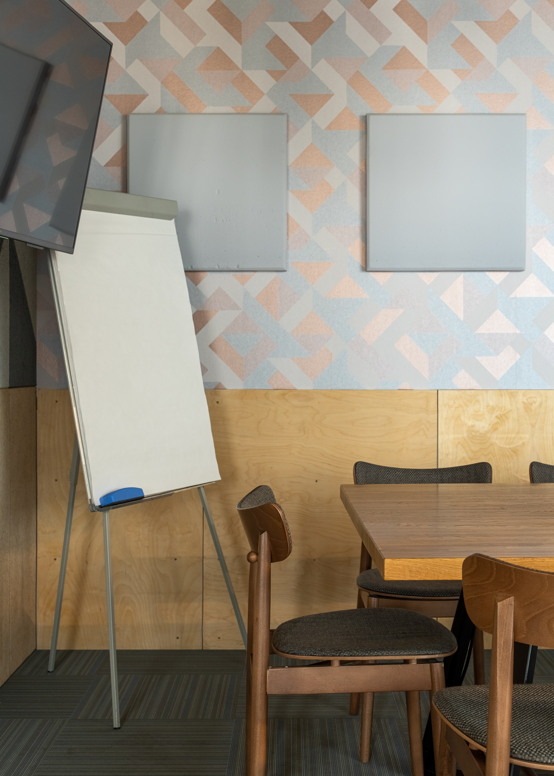 • Некоторые переговорные оборудованы дополнительными решениями — маркерная доска, флипчарт, оборудование для демонстрации контента, стерео-система для онлайн-конференций